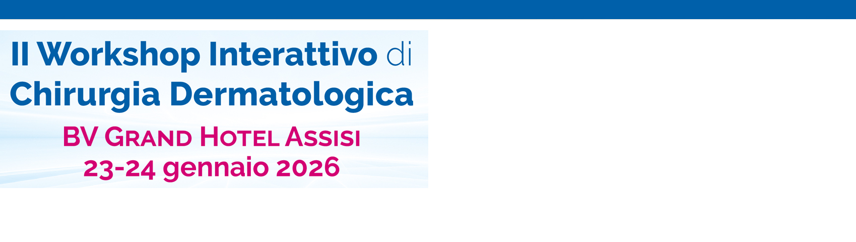 Il II Workshop interattivo di Chirurgia Dermatologica si terrà presso BV Grand Hotel Assisi (PG), nelle giornate del 23 e 24 gennaio 2026.